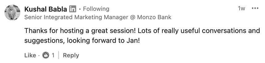 Lots of useful convos and suggestions - Kushal Babla, Monzo Bank